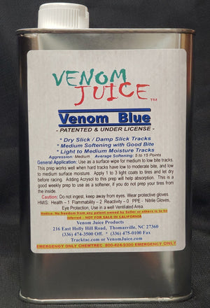 The Venom Blue works very well as a weekly wipe when you are needing to bring tires down between 5-10 points. We recommend starting on Monday applying 2-3 coats allowing each coat to dry between coats. Continue the process over the next 3 days or until your desired durometer reading is reached.