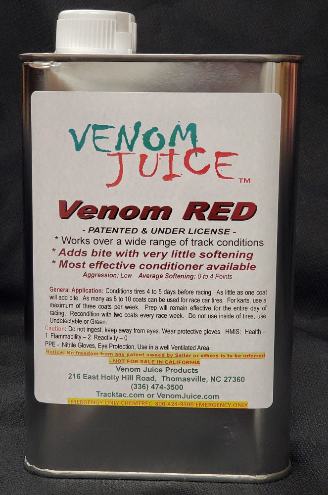 The Venom Red is our best conditioner and bite treatment we offer. The Red is our #1 weekly wipe from stock cars to karts. The Red is very popular in the stock car world because of its potency, lack of softening and its ability to pass the sniffer test.